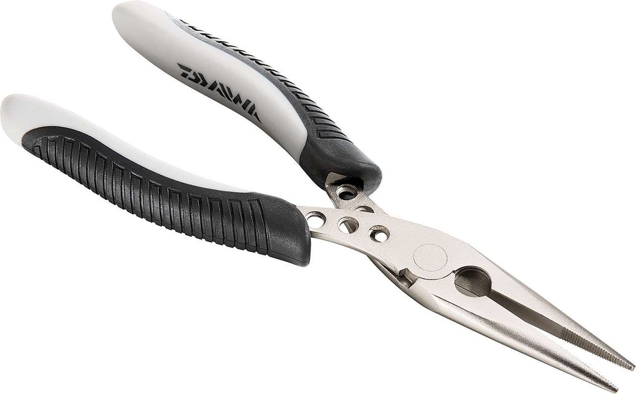 These Daiwa Needle Nose Pliers boast a corrosion resistant nickel finish, and heat treated carbon steel with a Rockwell ”C” hardness. Drilled handle arms, rubber True-Grip handles, and a double tempered process cutter round out the Daiwa Needle Nose Plier’s impressive list of features.