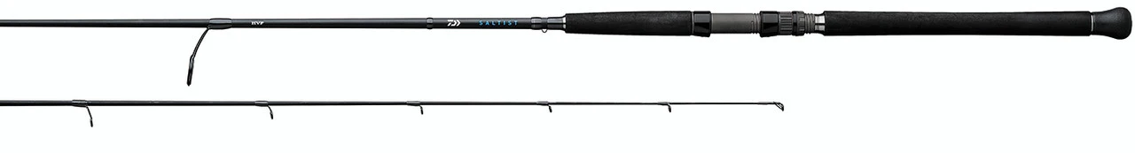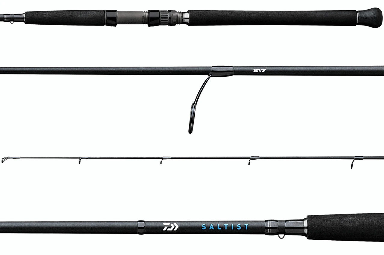 The Daiwa Saltist Inshore Spinning Rods are a versatile series of rods that anglers up and down the coast will find suitable for an enormous variety of species and applications. The Saltist Inshore makes the perfect “all around boat rod” for anglers who target different species with different techniques throughout their season. Northeast fisherman will find these rods perfect for jigging bucktails for ocean fluke and seabass, while Florida anglers will love them for live lining over reefs for grouper, snapper, jacks, and more. Featuring blanks made with Daiwa’s High Volume Fiber (HVF) Technology, these rods are constructed with a low-resin, high modulus carbon graphite material with more fibers per unit area than other rods in its class. This method of construction results in superior strength, lighter weight, and enhanced sensitivity. All models are equipped with Fuji aluminum oxide guides and are fitted with comfortable split-grip EVA handles.